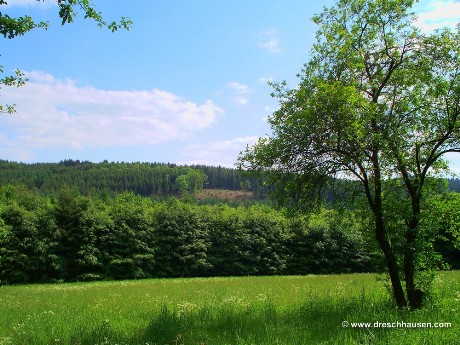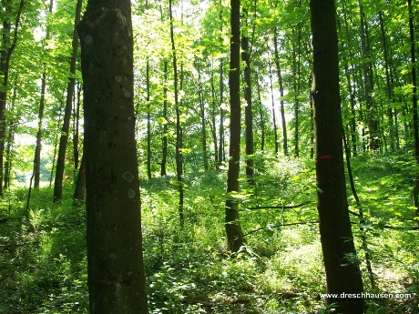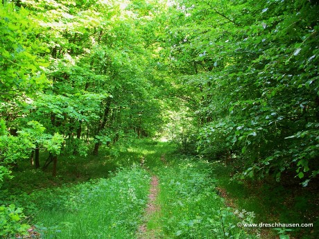 Sie sind links vom befestigten Waldweg abgebogen und gehen den alten verwilderten Weg herunter. Nach 65 Metern erreichen Sie eine wunderschöne große Lichtung. Sie halten sich links und gehen diese Lichtung weiter nach unten. Am Ende der Lichtung betreten Sie den Wald.