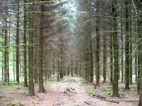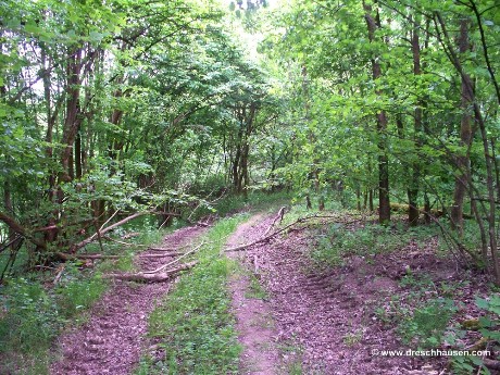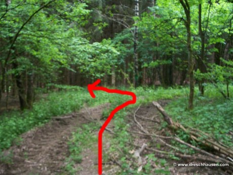 Wenn Sie nun also diesen alten Weg abwärts gehen, halten Sie sich nach 50 Metern links und folgen dem dann kommenden Trampelpfad weiter bergab.