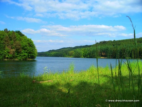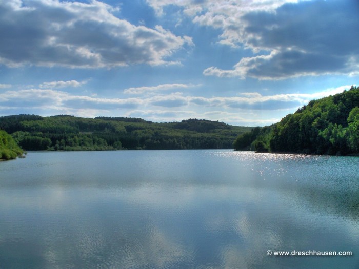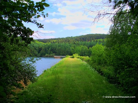 Sie betreten nun nach 200 Metern den Mittelstaudamm der Wiehltalsperre.